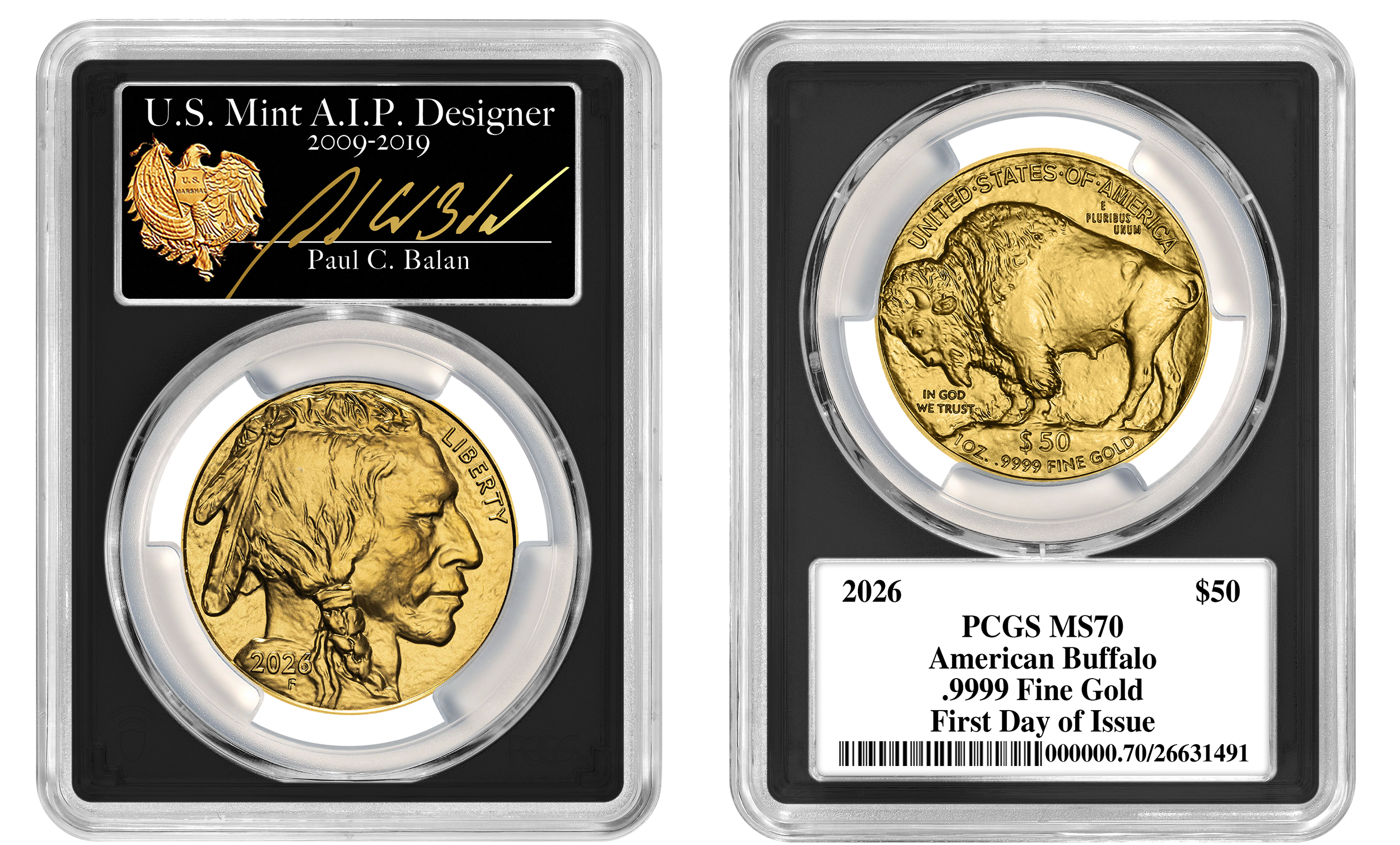 A premium U.S. Mint–issued .9999 fine gold coin honoring U.S. Mint A.I.P. Designer Paul C. Balan. Struck in 1 Troy oz of pure gold,